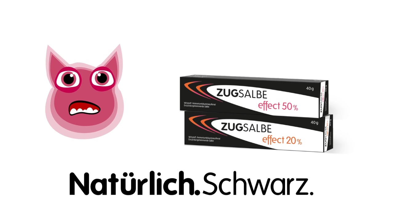 Pickel, Rasierpickel oder andere eitrige Hautentzündungen – ZUGSALBE effect hilft schnell und zuverlässig. Ebenso wird die Zugsalbe erfolgreich bei größeren eitrigen Hautentzündungen eingesetzt: Bei Abszessen, Furunkeln und Nagelbettentzündung zieht ZUGSALBE effect die Entzündung an die Hautoberfläche. Der Eiter kann sich entleeren und das Druckgefühl lässt nach. ZUGSALBE effect gibt es in zwei unterschiedlichen Wirkstärken – für jedes Anwendungsgebiet eine geeignete Konzentration.